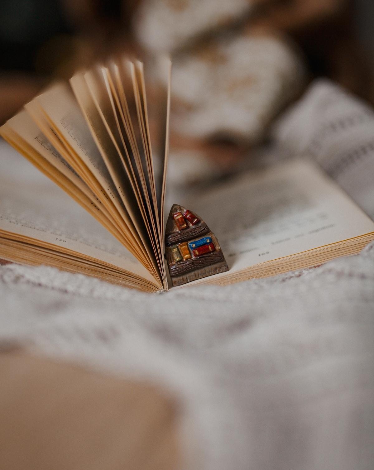 Handmade Ceramic Library Brooch: Book Lover Gift