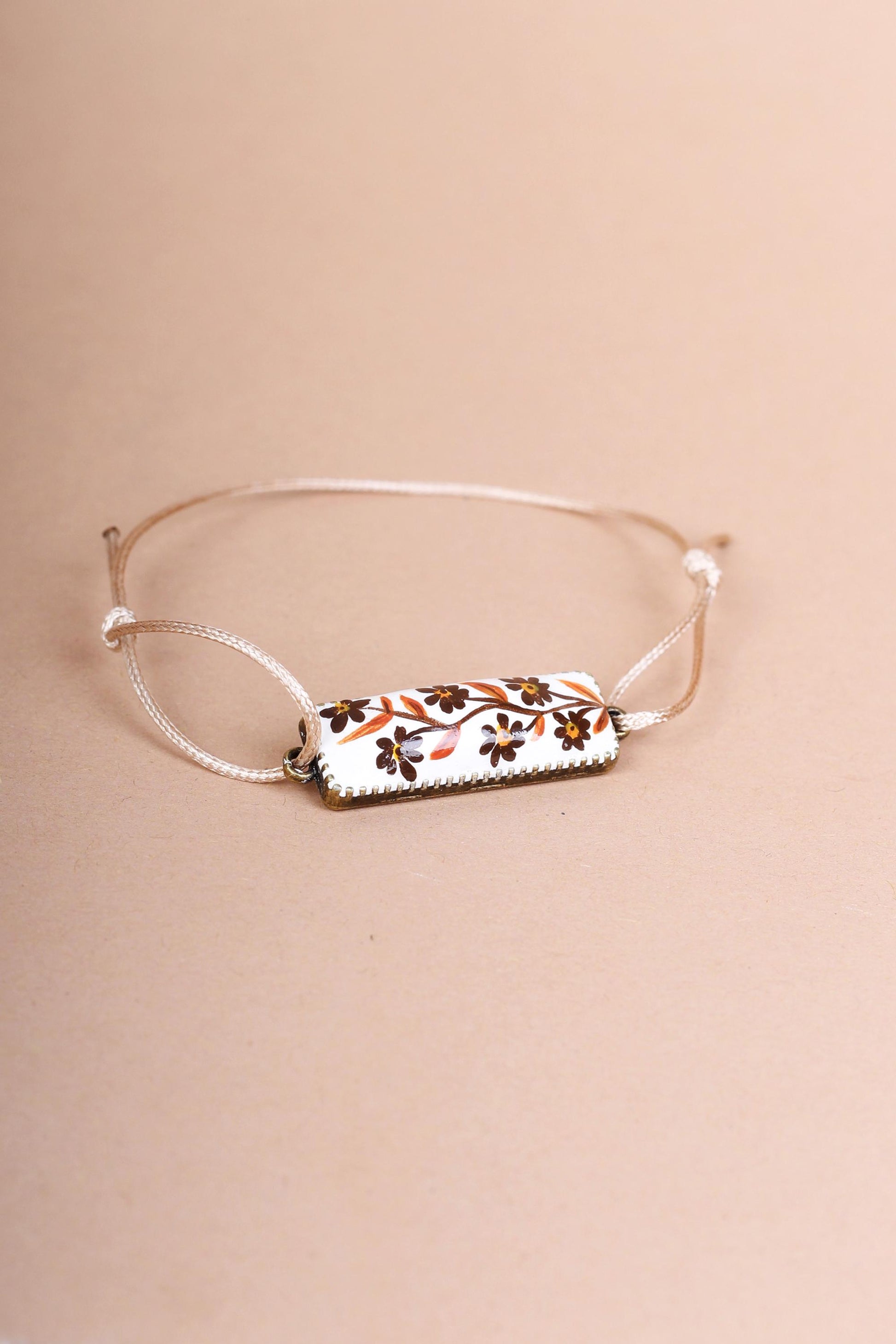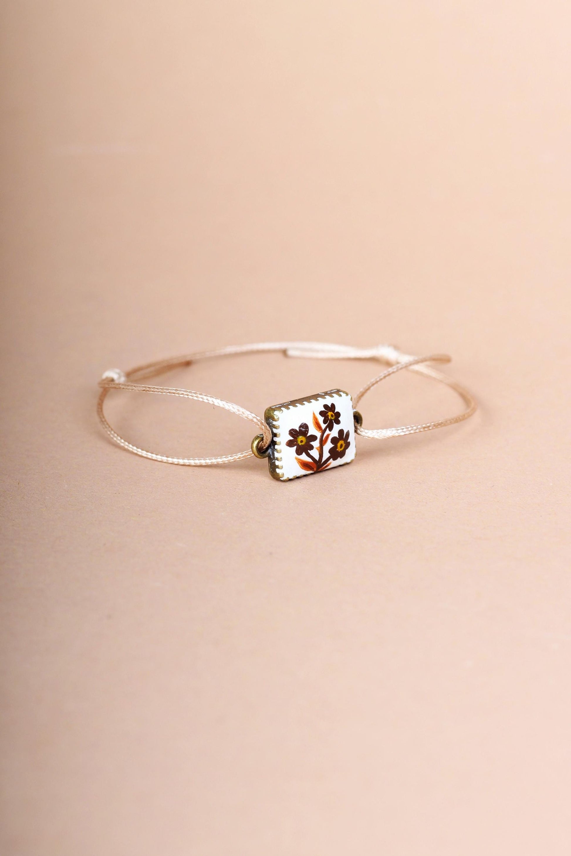 Handmade Floral Cabochon Bracelet: Minimalist Golden Wax String Jewelry