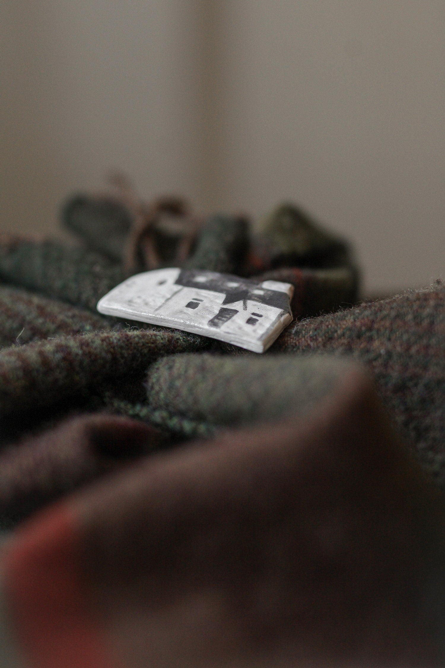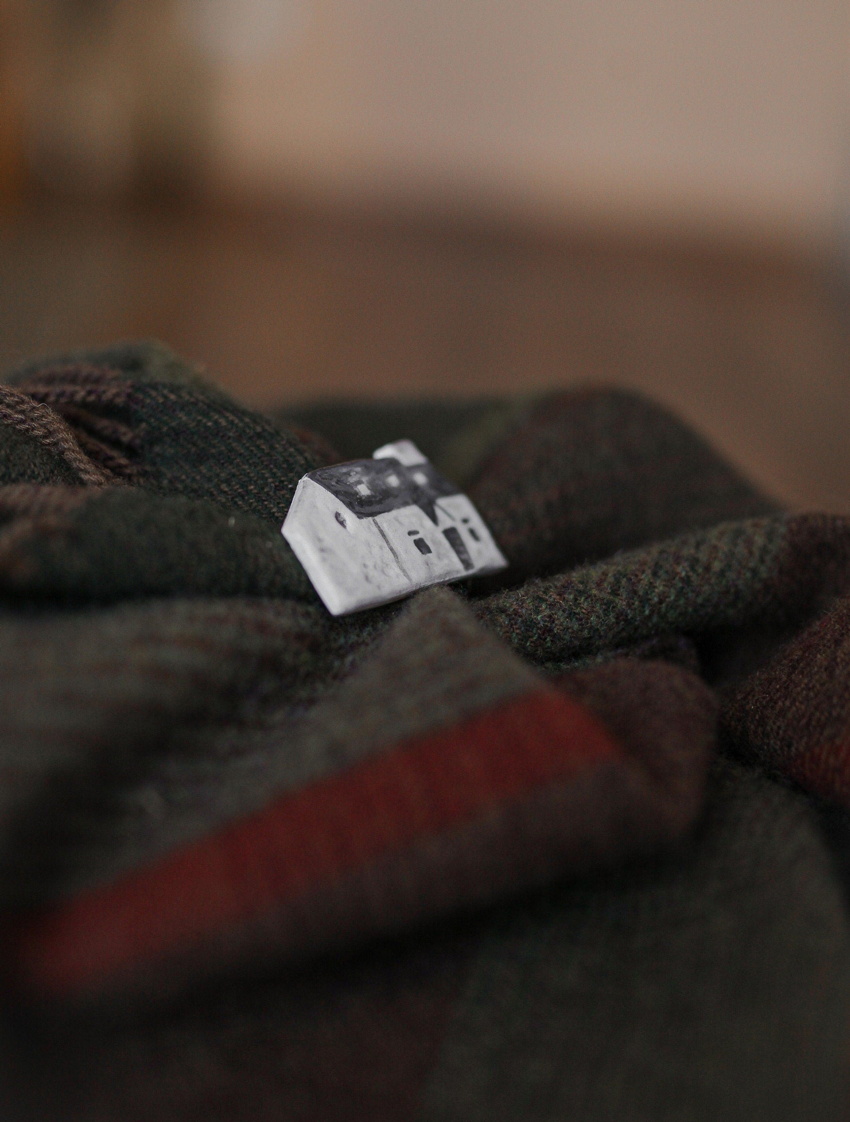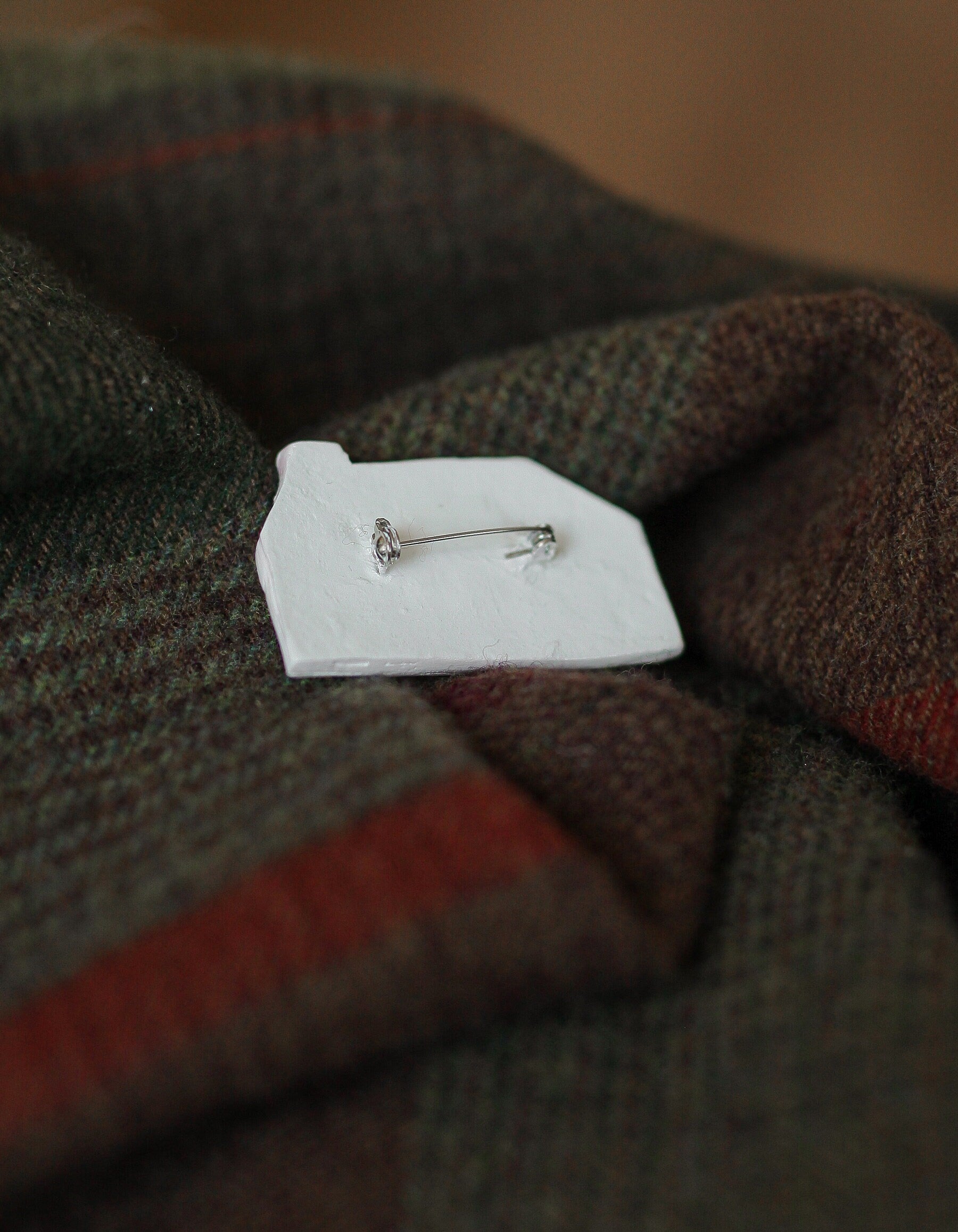 Wee White house of Glencoe brooch which design is inspired by Lagangarbh Hut located in Glencoe Scotland.